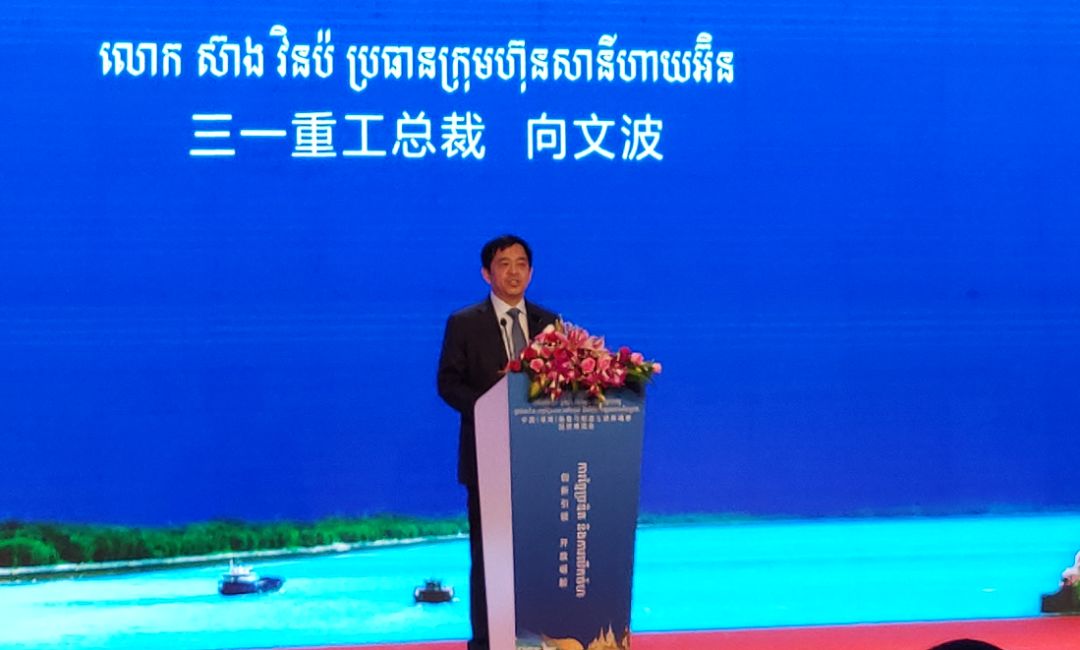 三一重工总裁向文波表示,从2008年开始,三一产品进入柬埔寨,目前混凝土机械、汽车起重机、履带起重机在柬埔寨的市场份额已经达到第一,挖掘机和旋挖钻也已成为当地知名品牌。三一设备参与了柬埔寨达岱水电站、西港火电厂等重大工程的建设施工。向文波说,“我们非常期待与柬埔寨企业家有更多的合作,为柬埔寨的发展与进步做出更多更大的贡献!我们也一定会和柬埔寨合作伙伴一起,为客户提供高性价比的产品和优质服务。”