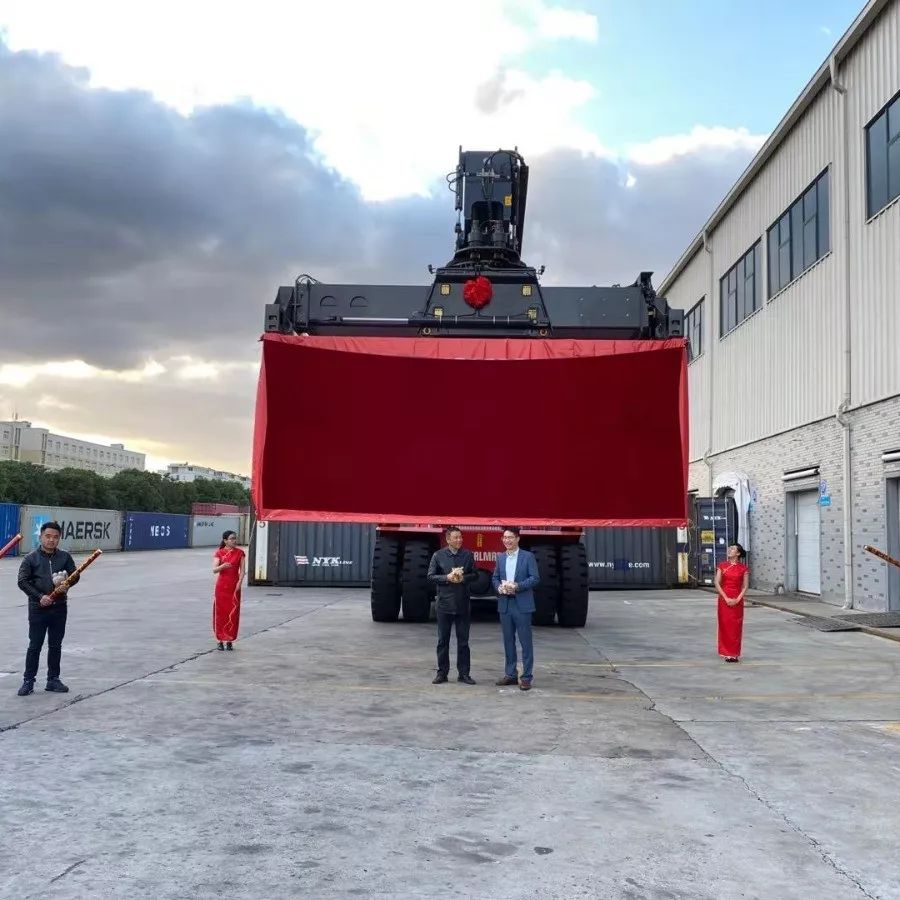 2019年11月19日,初冬的明媚阳光下,在宁波龙星物流有限公司举行了卡尔玛新型旗舰机型ECO环保正面吊的交付仪式。卡尔玛中国区方案销售总监唐恕先生带领的华东销售团队,宁波龙星物流总经理王伟国先生,副总经理钱屹女士,总经理助理兼操作总监王蕾女士及其他部门的30余人一起参与了本次活动。
