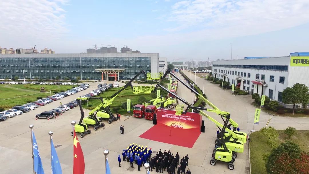 ▲中联重科高空作业机械公司百台臂式产品批量交付客户
