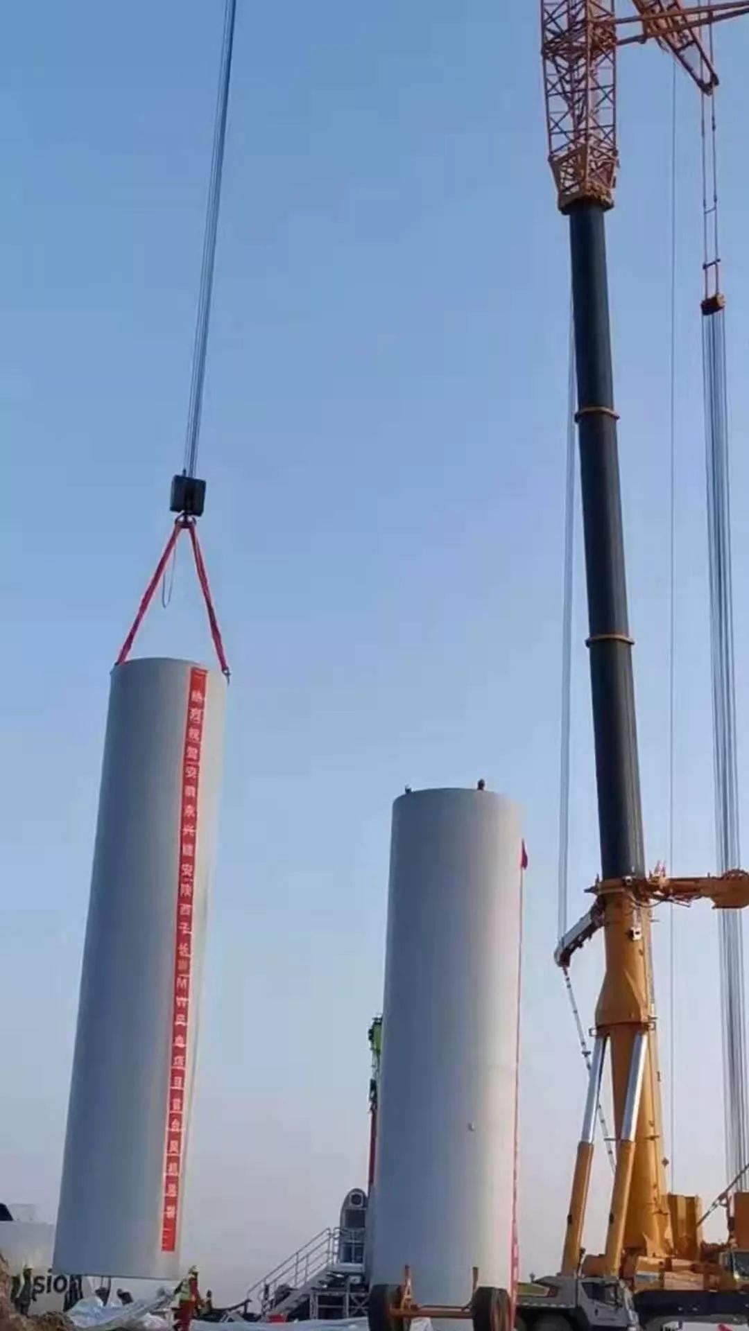 在占地280平米的空间上,全球最大的全地面起重机徐工XCA1600成功吊起最大直径29米的叶轮并在130米高度安装到位!