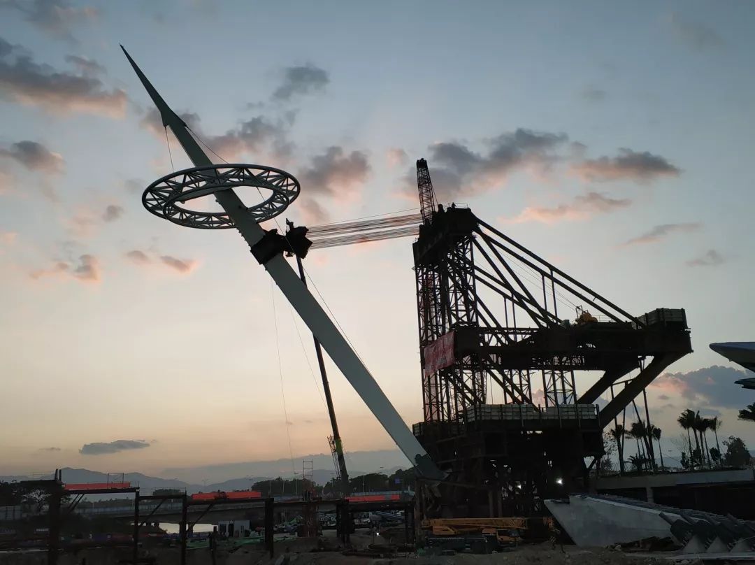 12月1日18时20分,经过近八个小时紧张的竖转测试作业,三亚海棠湾景观桥项目主塔“云戒”完成竖转关键节点,为景观桥在12月底完工奠定基础,该桥建成后将成为三亚的“新名片”。