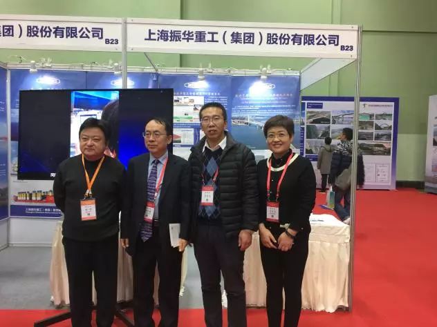 吴富生和马立芬到公司展位与多位领导专家沟通交流振华重工在海工装备设计制造以及国内外桥梁的制造经验和实力。中交天航局总工程师高伟专门就海工装备方面与吴富生进行深入交流和探讨,对公司海工装备的设计研发制造能力给予高度评价。桥梁杂志社秘书长赵君黎与吴富生和马立芬就国外桥梁标准及制造要求进行深入沟通交流。