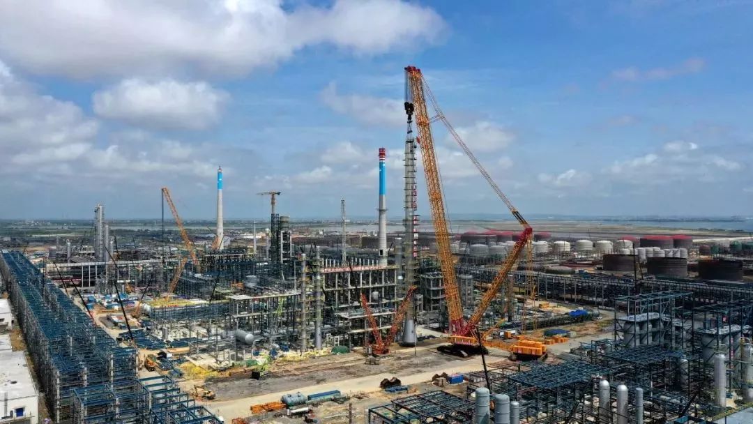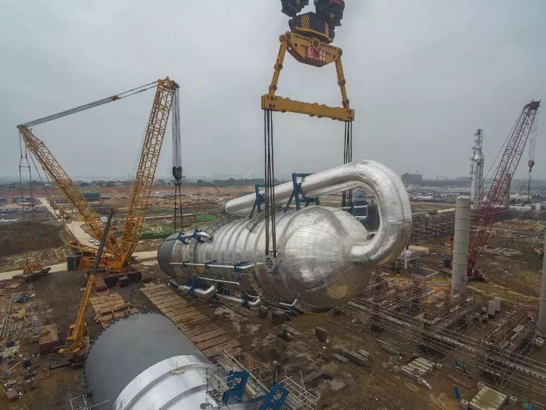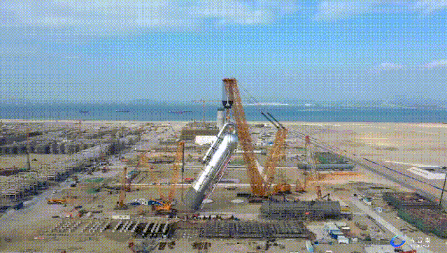 ↓↓↓2019年初中科炼化一体化项目最大设备(乙烯2号丙烯塔)建设安装现场,“世界第一吊”挑战海岛炼化项目设备体积最大、高度最高,吊装难度最大、吊装要求也最高的千吨级乙烯2号丙烯塔吊装。