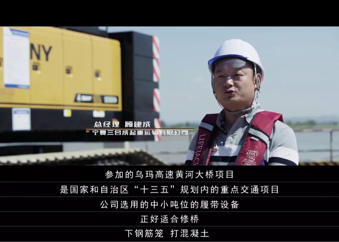 宁夏三合成起重运输有限公司总经理顾建成:“我们三合成主营业务一块是电力线塔,另一块就是公路桥梁的基础建设,基础建设目前主要是在黄河桥。我们履带设备中小吨位的正好适合在这里修桥。到目前为止已经完成了9座黄河大桥,都在银川西北这边。”