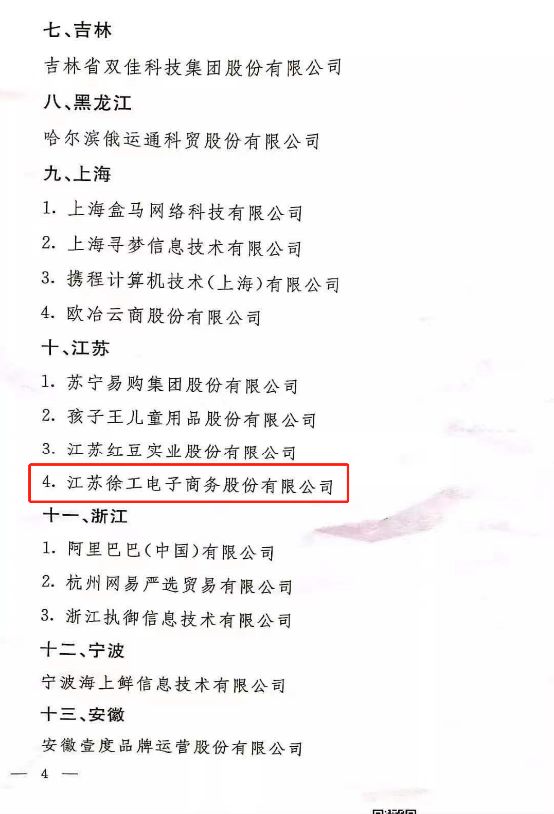 近日,国家商务部公布了全国首批线上线下融合发展数字商务企业名单,助力加快推动商务领域企业数字化转型,江苏徐工电子商务股份有限公司与阿里巴巴、京东、小米、苏宁等60家企业一道入选首批线上线下融合发展数字商务企业。