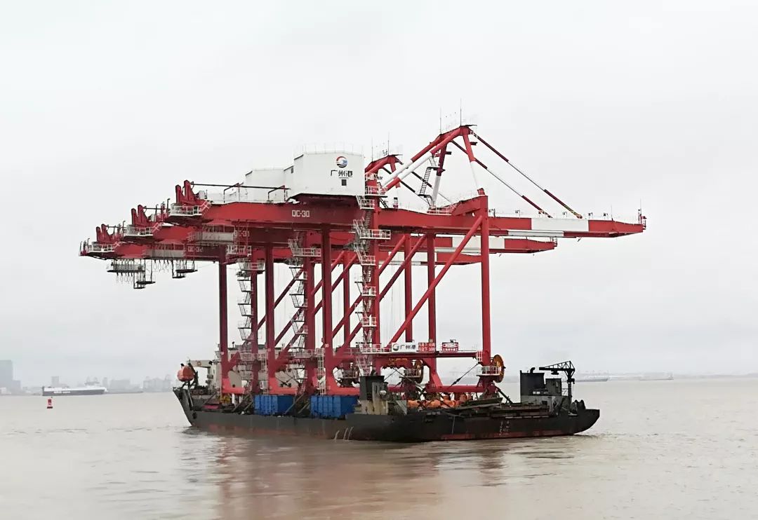 1月16日上午,广州南沙三期3台轻型岸桥离开振华重工长兴分公司码头,前往用户码头。