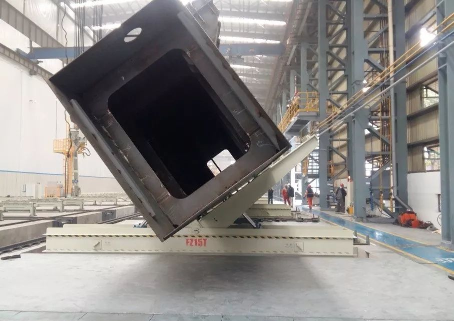 在箱梁智能制造流程中,根据箱体结构特点和制作工艺,全部实现了大型箱梁的自动翻身,全程采用RGV小车横向、纵向自动化物流技术,避免行车吊装或转运,有效减少箱体流转过程中的变形。