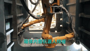 针对大型起重机箱体内部的深窄结构,采用可多方向移动的大型焊接龙门,并搭载具有传感功能的六轴转向焊接机器人,可自动进行焊缝寻位及焊缝跟踪,保证焊接质量;多台机器人同时焊接,既提高生产效率,也能有效减少焊接变形。