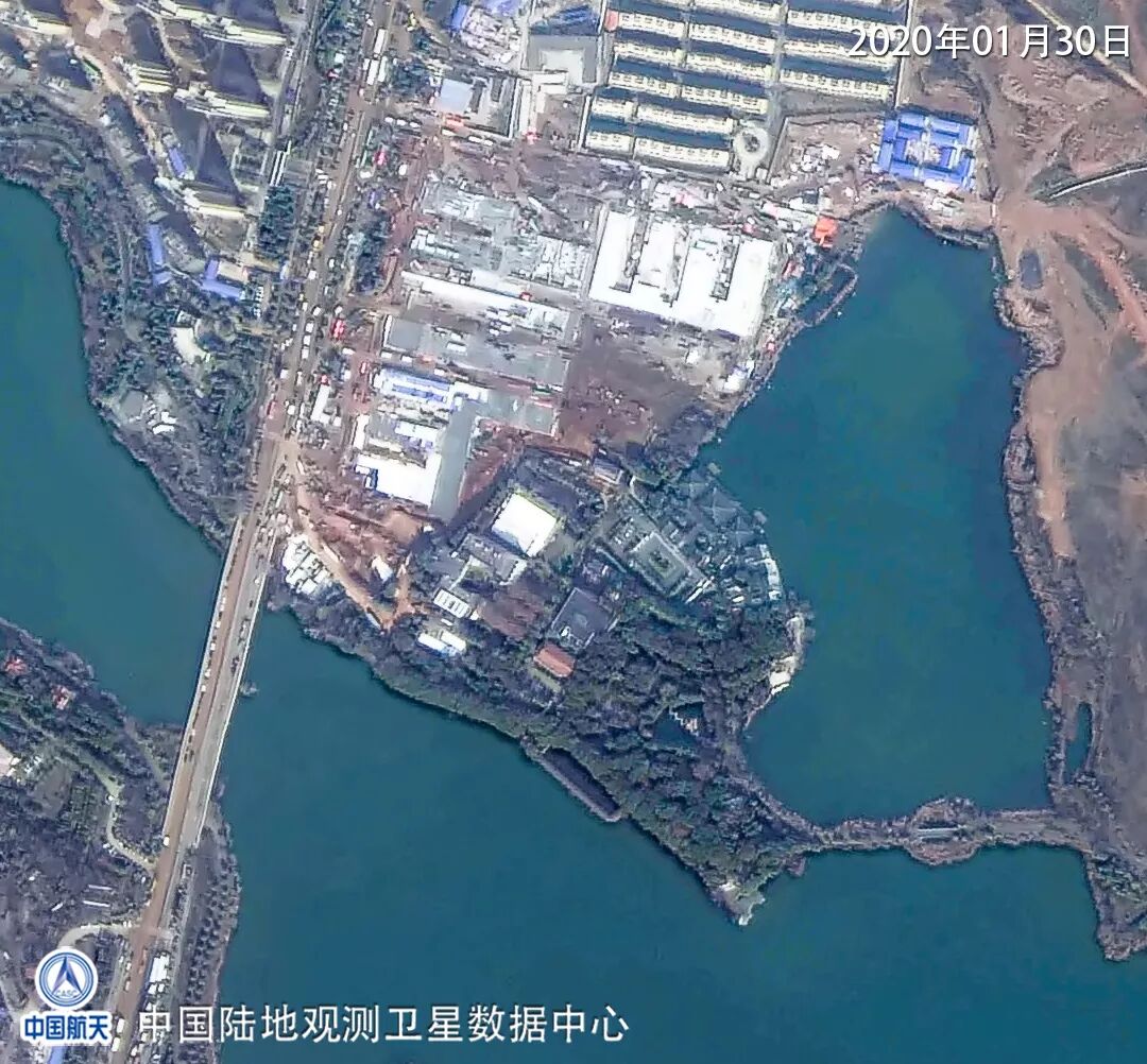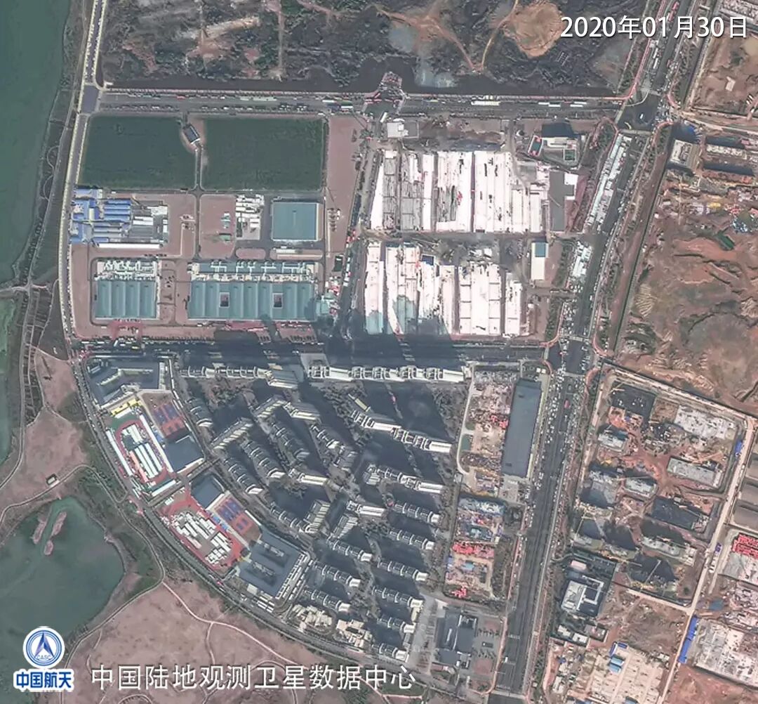 ▲ 火神山医院(建设中,高分二号卫星拍摄于2020年1月30日)