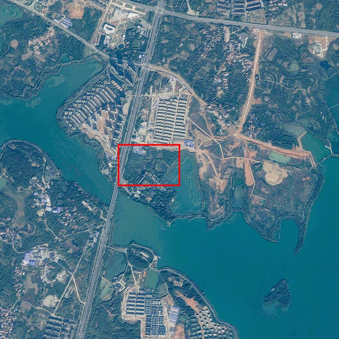 ▲ 火神山医院选址位置(建设前,高分二号卫星拍摄于2019年10月29日)
