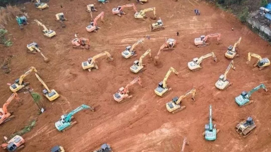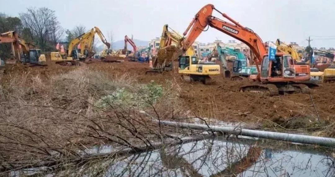 如此宏大的工程,仅仅用了10天!????1月24日 除夕 第1天上百台挖机抵达现场,开始土地平整。▼