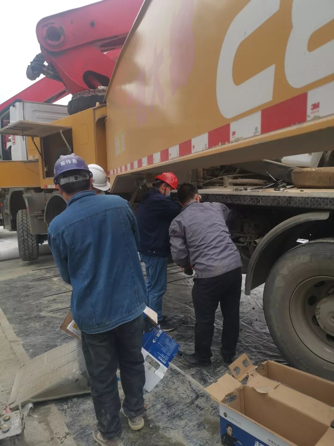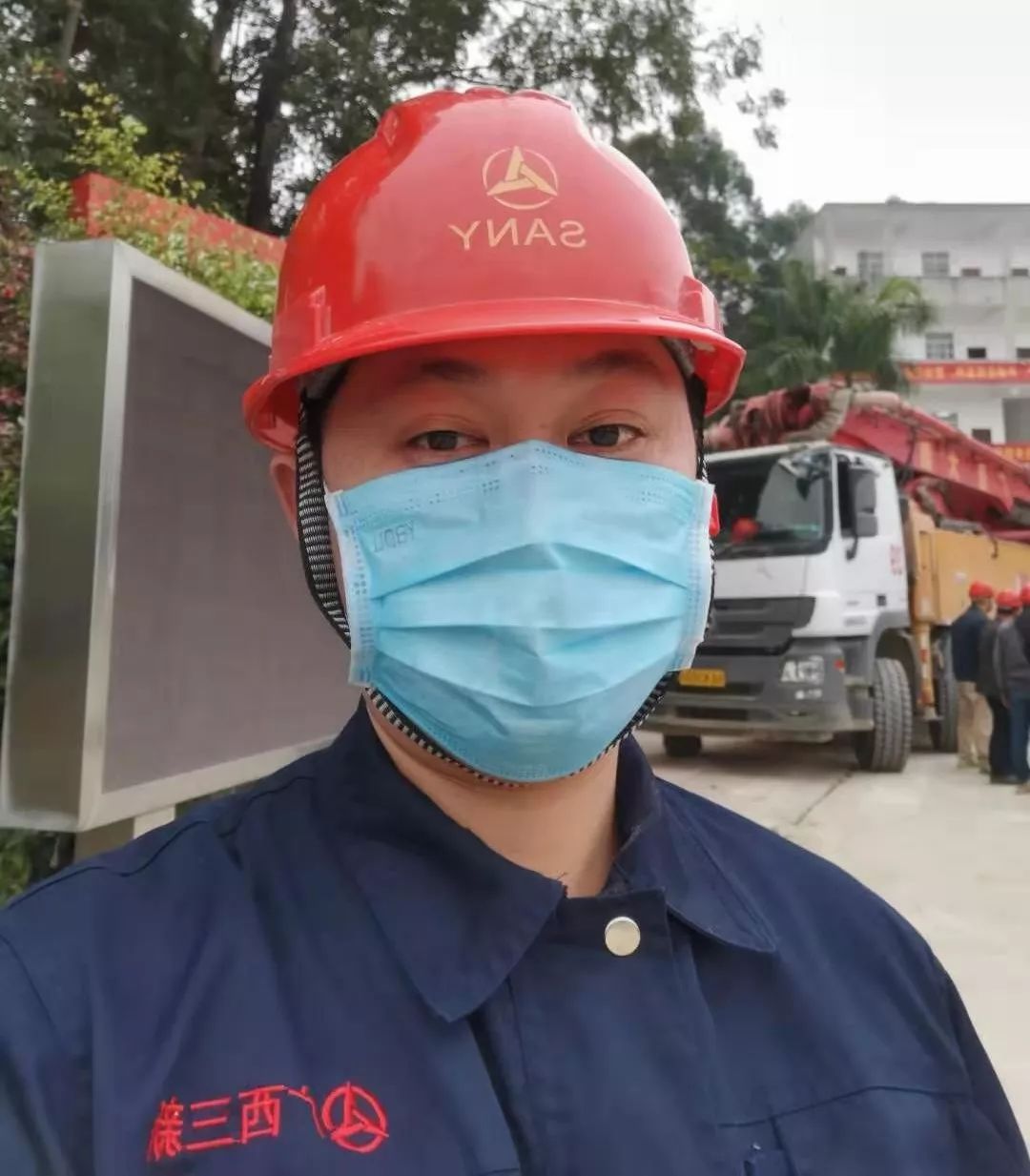在此次参与建设的三一泵送团队中,有一位特殊的成员-三一泵送广西服务工程师陈强。家住广西桂林荔浦县的陈强虽说离家不远,但工作忙碌的他追溯起与家人的上一次见面已有半年之久。为了不让家人担心,在接到防疫医院建设任务后,陈强并没有第一时间告知家人,而是与同伴滕绿一道迅速备好工具前往防疫医院建设地提供服务支持。
