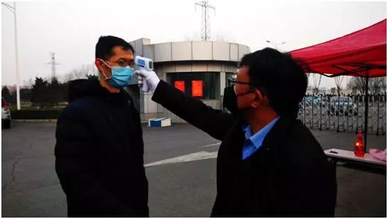 △中联重科土方机械分公司员工在入园口接受体温检测