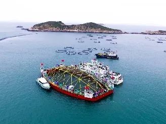 2018年,振华重工开始自主研制深远海离岸养殖装备,当年10月投入使用的“振鲍1”号成为世界首创的离岸深水鲍鱼养殖平台,2019年5月,国内首创深远海机械化海鱼养殖平台“振渔1”号投入使用。这些装备推动了传统近岸养殖走向深远海,拉开海上养殖产业变革的序幕。