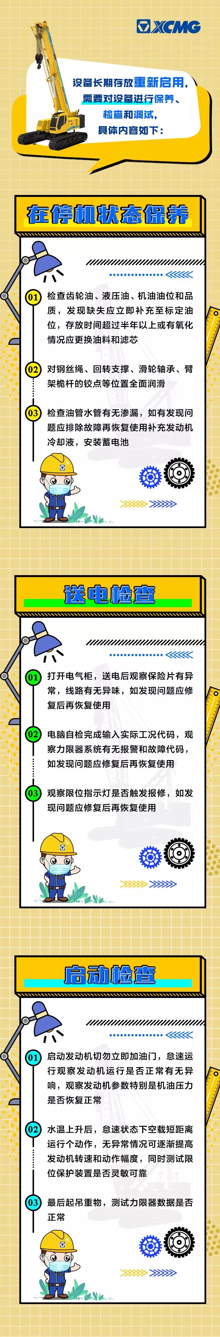 近日,国家各部委、地方政府出台一系列政策推动全国企业陆续复工。复工期间,您重新启用履带起重机的方式方法正确吗?其实设备重新启用时的每个环节都是有步骤、有讲究的!下面请看我们为大家精心准备的相关攻略: