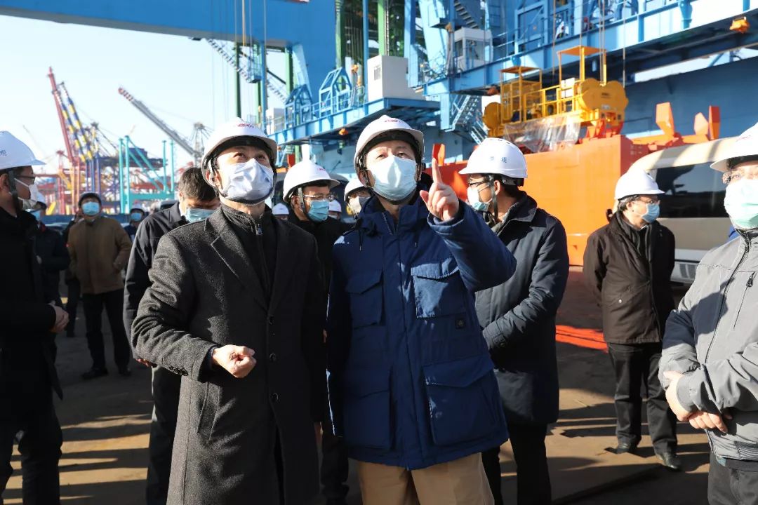 2月17日下午,上海市副市长吴清一行来到振华重工长兴分公司,实地调研分公司的疫情防控及复工情况。崇明区委书记李政,振华重工党委书记、董事长朱连宇,总裁、党委副书记黄庆丰陪同调研。