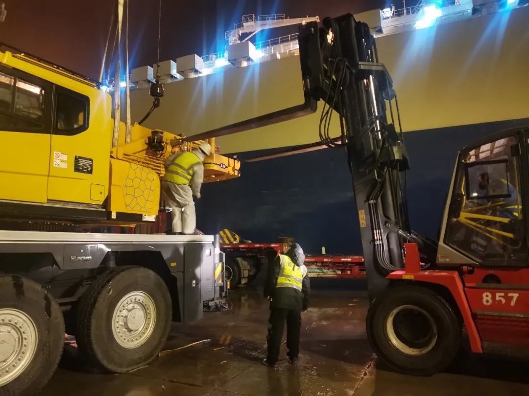 两天的辛苦终归会有收获,在客户规定的时间里,他们提前2小时完成四台起重机的设备安装和调试工作,将设备交接给港口相关负责人。