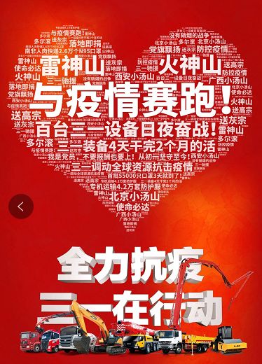 三一重工海外员工从尼日尼亚、秘鲁、沙特等国家采购医疗防护物资并跨越两万多公里专机运回国内捐赠给一线医护人员,在这场休戚相关、命运与共的战“疫”中,三一和每个中国人都坚信: