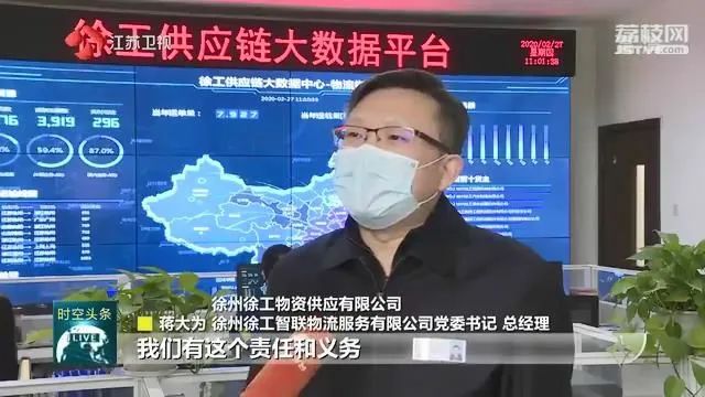 徐州徐工物资供应有限公司、徐州徐工智联物流服务有限公司党委书记、总经理蒋大为说:“我们有这个责任和义务来带领供应链渡过这个难关。我们根据精准的一个生产计划,来对接相应的供应商,组织相应的生产。尽最大能力,降低疫情对我们整个生产经营的影响。”