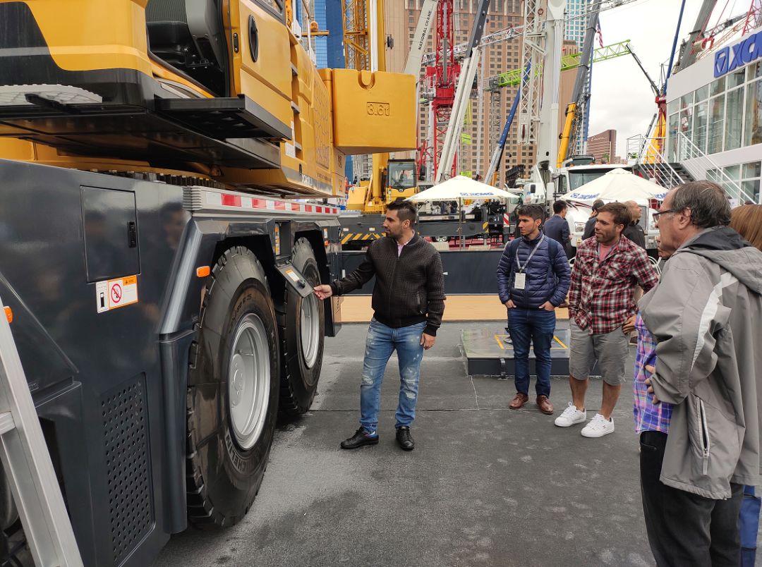 作为越野轮胎起重机兴盛地之一,北美市场对越野轮胎起重机的“鉴赏水平”相当之高。此次参展的徐工XCR60L5_U,整机采用大排量双变量柱塞泵匹配徐工专利技术的合流阀,起重作业效率提升13%,作业效率行业领先。同时配备大功率发动机+低速大扭矩的液力变矩传动系统,加速性能提升10%,最高车速36km/h,最大爬坡能力86%,最小转弯半径仅6m,行业最小。展会现场,多国参展客商对徐工XCR60L5_U表现出强烈的兴趣和购买意愿。