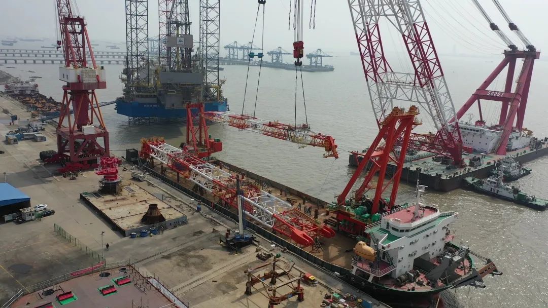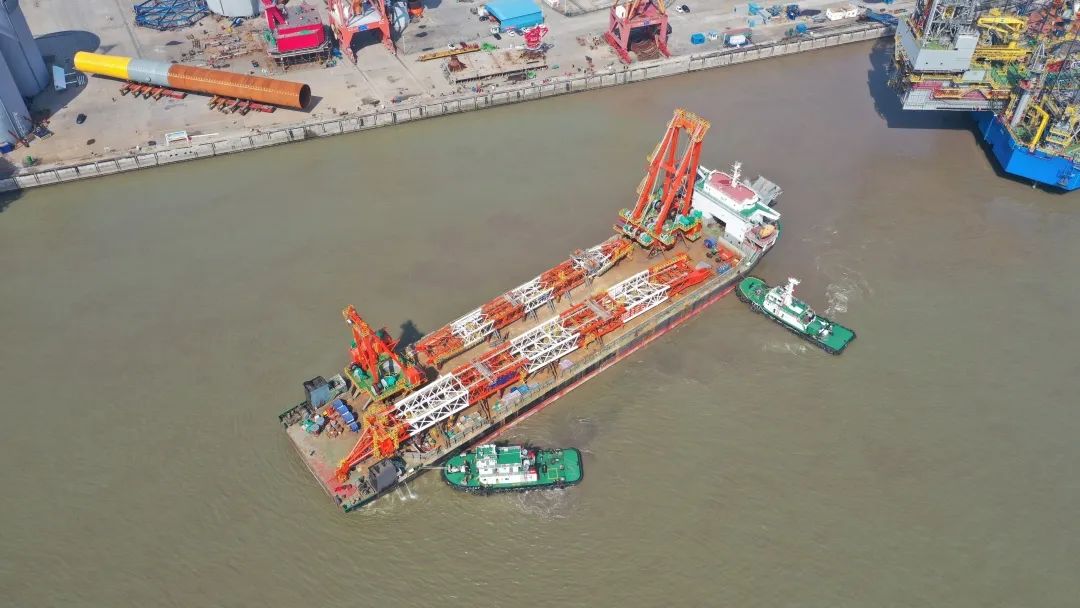 近日,广州打捞局2台起重机的回转底盘及臂架在振华重工海工平台事业部码头装船发运,前往广州黄埔文冲船厂。