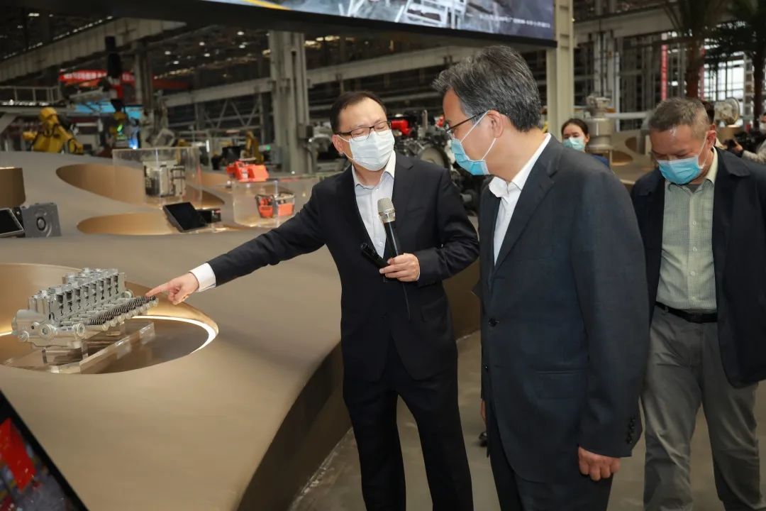 李殿勋一行先后参观了三一企业展厅和18号工厂,听取唐修国详细介绍企业发展历史、研发创新,以及近年来在“数字化、国际化”领域的系列转型之举。