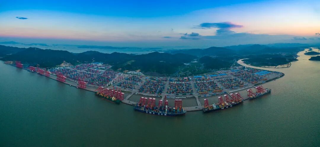宁波舟山港处于“丝绸之路经济带”和“21世纪海上丝绸之路”交汇点。2019年,宁波舟山港完成货物吞吐量11.2亿吨,连续11年位居世界第一,集装箱吞吐量2753.5万标箱,稳居全球港口第三位。