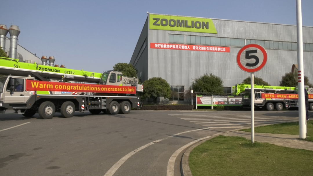 ▲中联重科汽车起重机从工厂出发奔赴印度