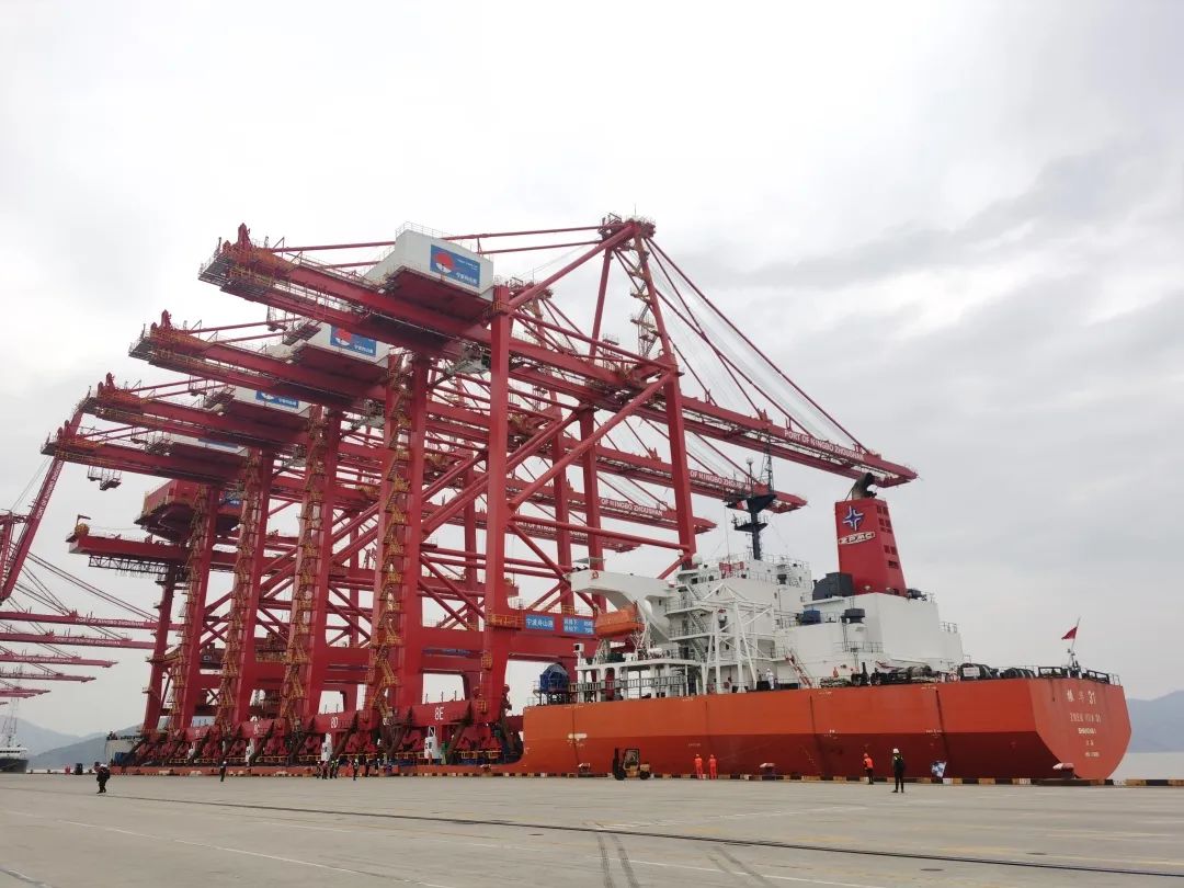4月16日,在习近平总书记实地考察宁波舟山港穿山港区后的第三周,振华重工为宁波穿山港区码头提供的4台岸桥顺利交付用户。