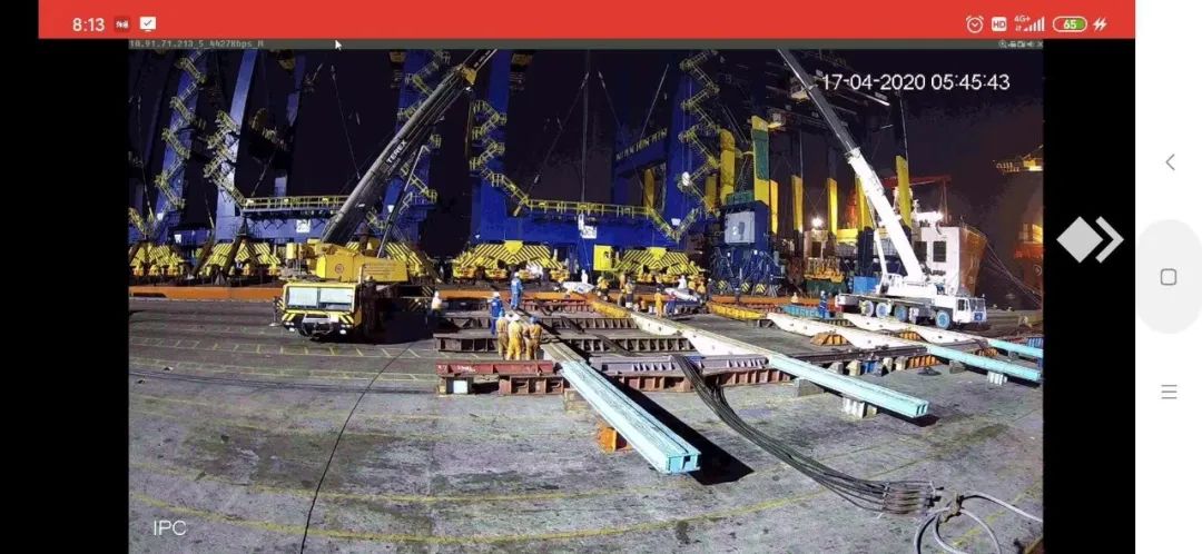 “振华28”轮靠泊后,印度现场团队对卸船工作进行了一次详细的模拟演练,以便提前发现问题,寻找解决方案。4月17日一早,天还未亮,印度码头现场已经如火如荼,进行卸船前的最后准备工作。与此同时,上海总部的应急卸船指导小组在会议室集合,“云指挥”准备就绪,即将对印度现场进行监控,提供远程技术指导。