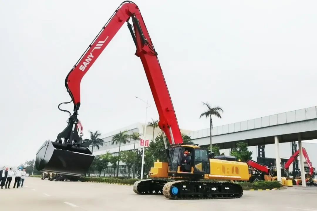 4月25日16:08,继三一电动正面吊后,三一海工迎来第二款产品的线上发布,70吨级履带式双动力液压抓料机正式亮相,这也是业内抓料机产品的首次云发布。