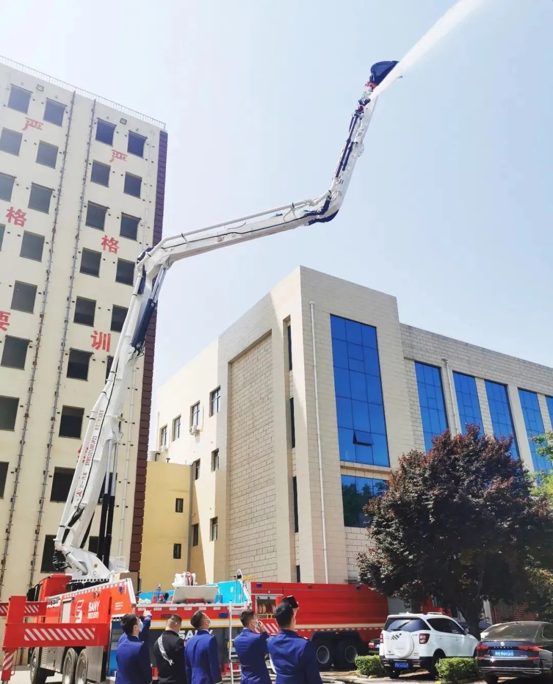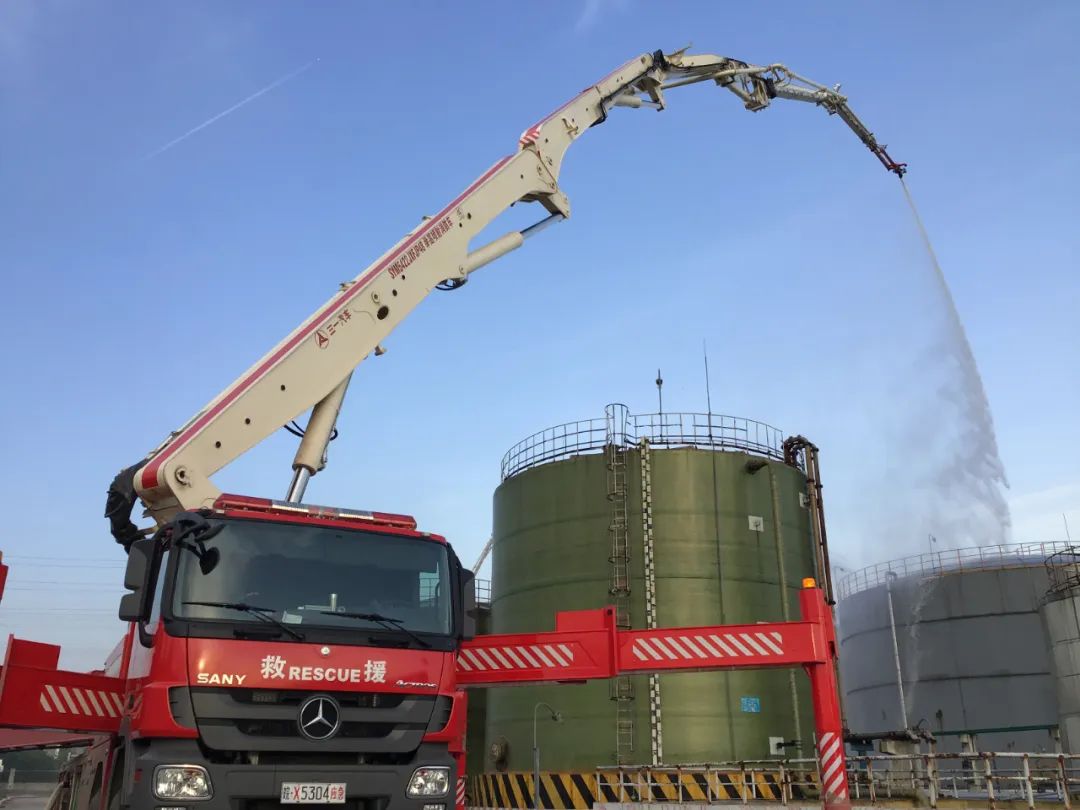 4月25日,三一应急装备公司应邀参与了东部某省高危石化火灾演练,我司48米大跨度高喷消防车大显神威。相比同类型消防车,既做到了安全的远距离操作,避免高危场景的二次伤害;凭借灵活臂架隔空直指预定油罐位置,真正做到了指哪打哪,准确高效。