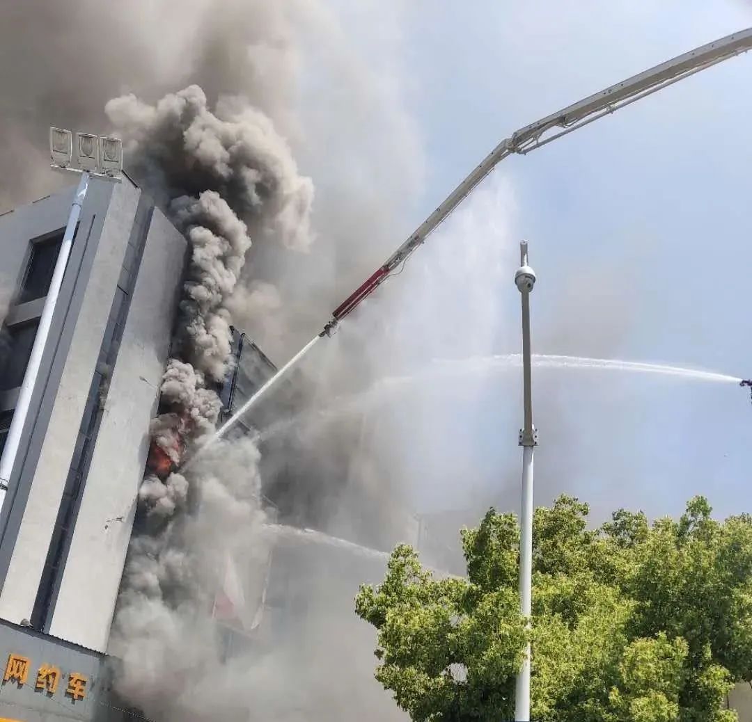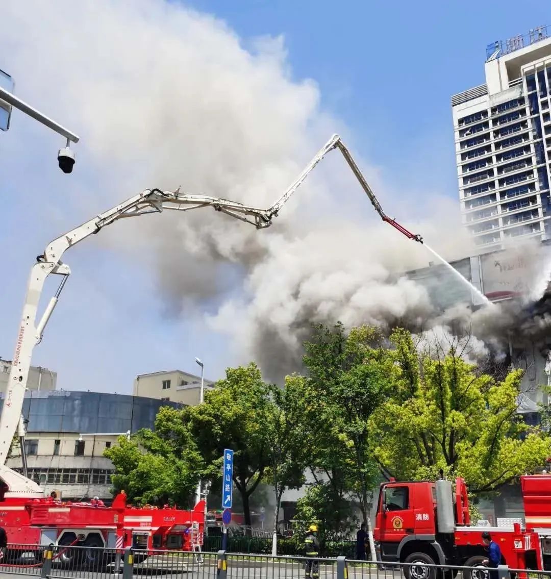 4月28日上午10 点多,安徽省合肥市站前路与全椒支路交口附近的宝业窗帘家纺广场B 座三楼突发大火。接报后,于11点多,三一举高喷消防车作为主力灭火装备投入现场进行灭火,经过两个多小时紧张救援,在下午1点多,成功控制火势,现场浓烟减少,明火被扑灭。