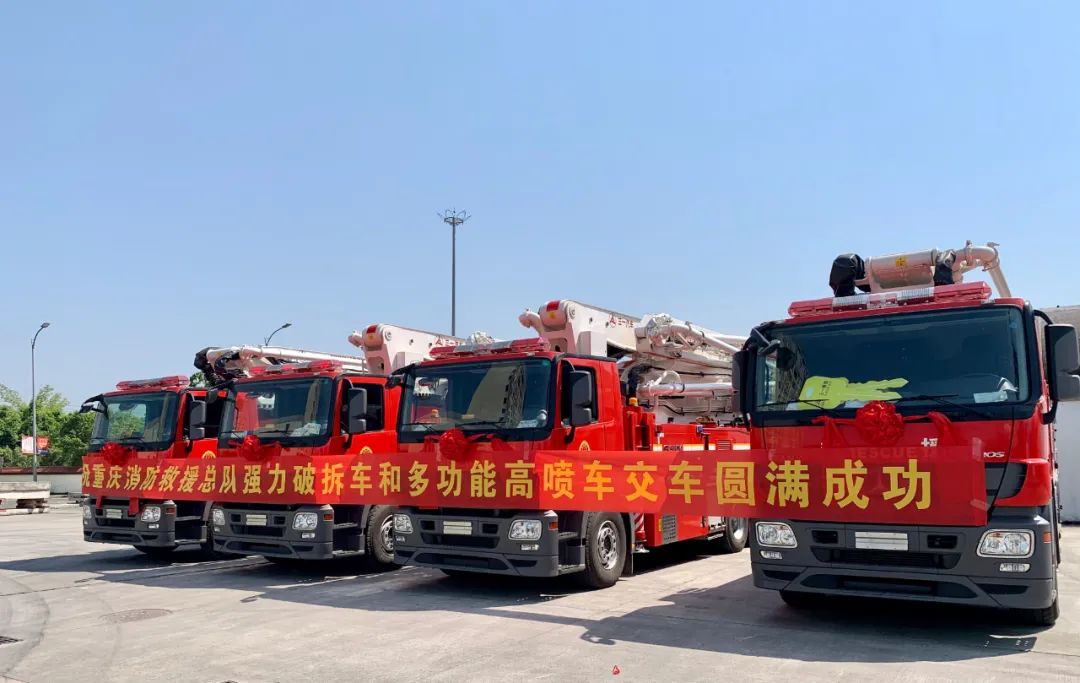 4月28日,在重庆消防救援总队,2台三一41米多功能大跨度消防车和2台三一23米强力破拆消防车进行了验收和性能测试,完成交验。此后,三一消防装备也将出现在重庆的各类应急救援场景,并提供中高层建筑、危化救援中所需要的破拆、灭火、救援的战斗能力,为消防人员和人民财产安全保驾护航。