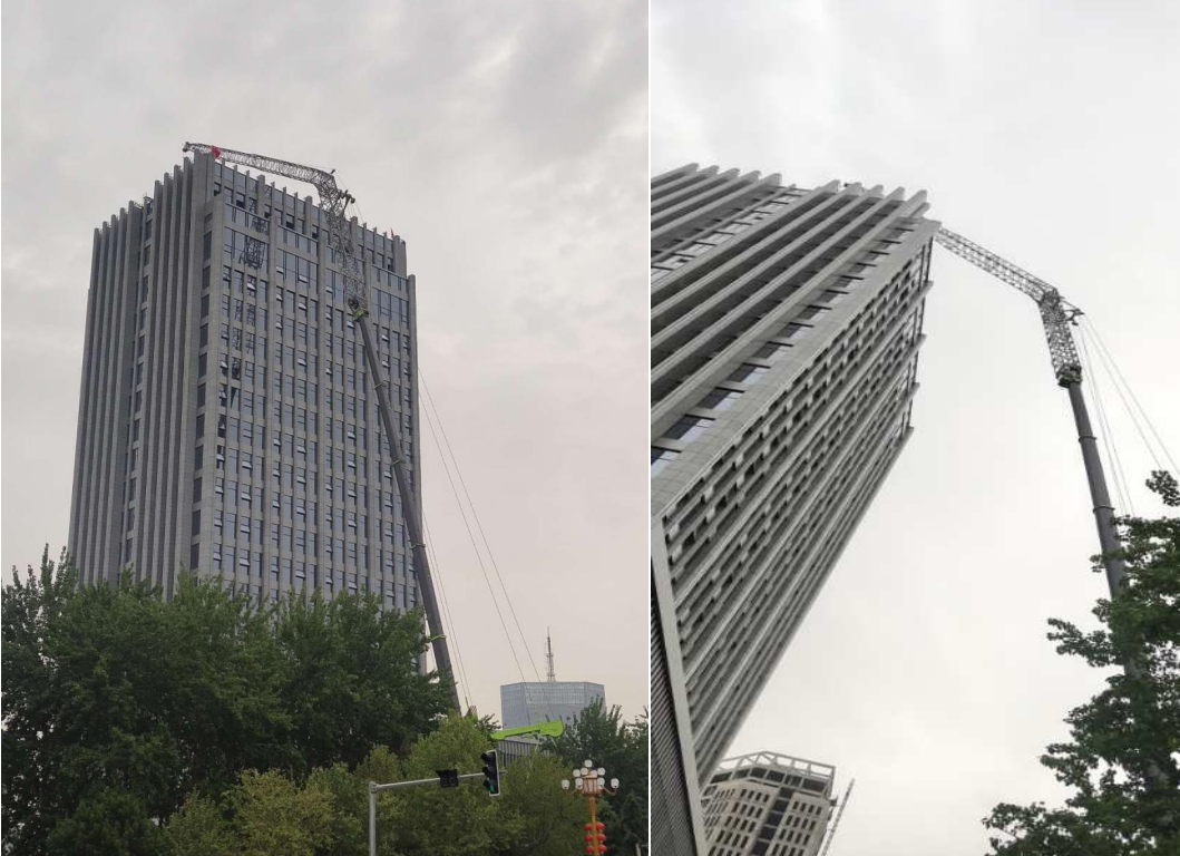 2020年4月15日,河南省许昌市的老年大学主体楼正在进行楼顶框架钢构施工安装。本次施工项目地点位于城市地带,周围环境复杂,施工场地较小,给施工造成极大的困难,在如此严苛施工条件下需将1-3.4吨钢构框架吊装至100M高的主题楼楼顶。