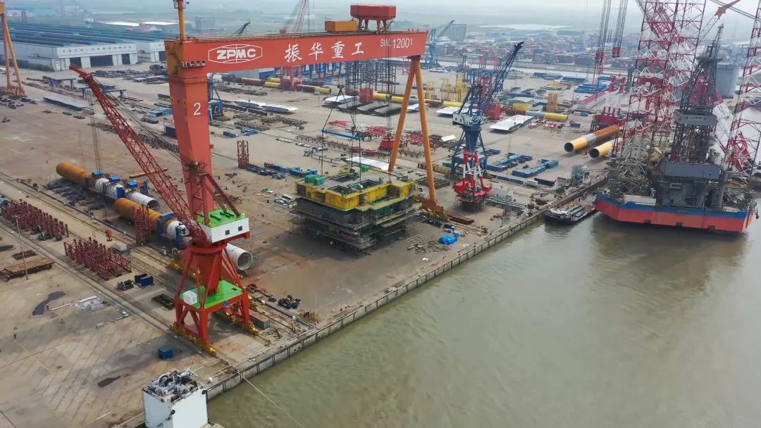 该项目是振华重工与广东省电力设计研究院有限公司继外罗升压站后,合作的第二个海上升压站项目。项目由三部分组成,分别为基础桩、导管架以及上部平台。其中,上部平台共三层,平面尺寸约为38.4米×36米,高16米。基础桩和导管架已于4月19日发运前往施工现场。