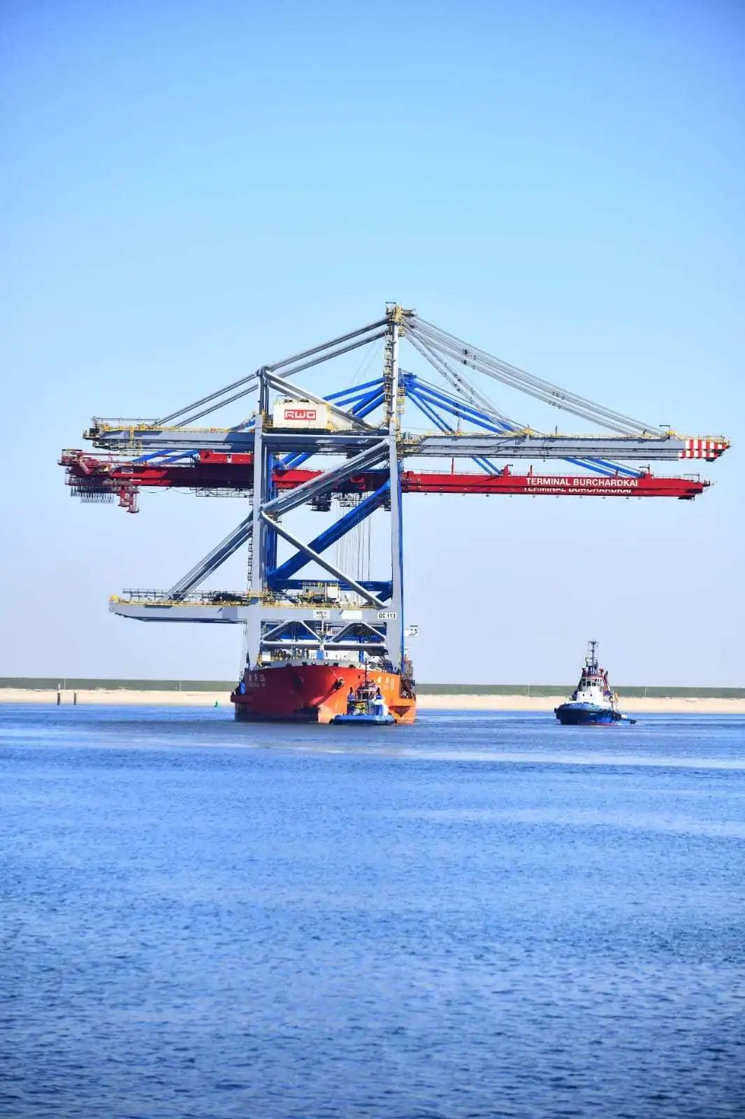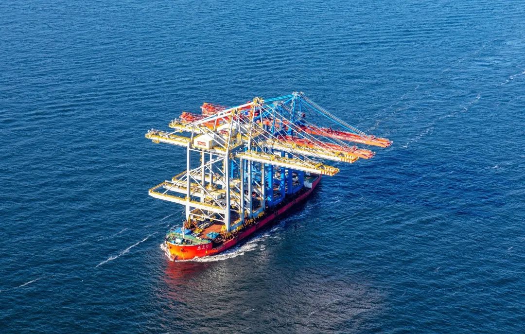 在荷兰鹿特丹RWG码头,装载着2台岸桥的“振华26”轮抵港并于4月28日顺利卸船,这也是振华重工复工复产后发运的首船设备。