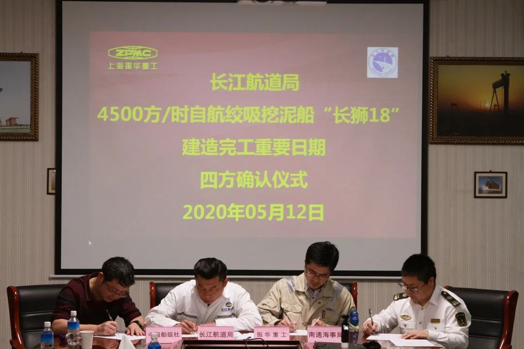5月12日,由振华重工为长江航道局建造的4500方/时自航绞吸式挖泥船“长狮18”,在启东海洋公司顺利举行完工四方见证仪式。长江航道局、CCS船级社、南通海事局、启东海洋公司相关代表共同出席,并签署了四方见证的相关文件。