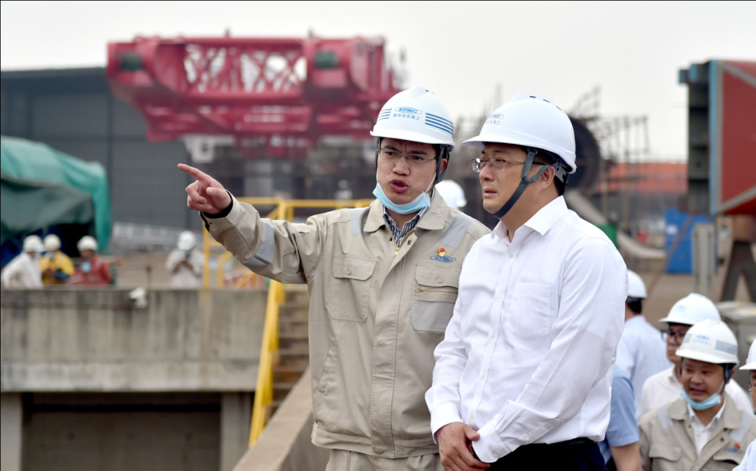 5月11日,启东市委书记王晓斌一行领导莅临启东海洋公司对重型装配车间建设情况、船坞在建项目进行调研,海工集团执行总经理、启东海洋公司董事长兼支部书记袁晶热情接待。