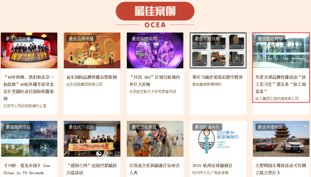 这是继2018年境外社交媒体整合营销项目获评首届“海帆奖”“中国品牌海外传播十大杰出案例”之后,徐工再度脱颖而出,成为中国品牌国际化推广的典范。