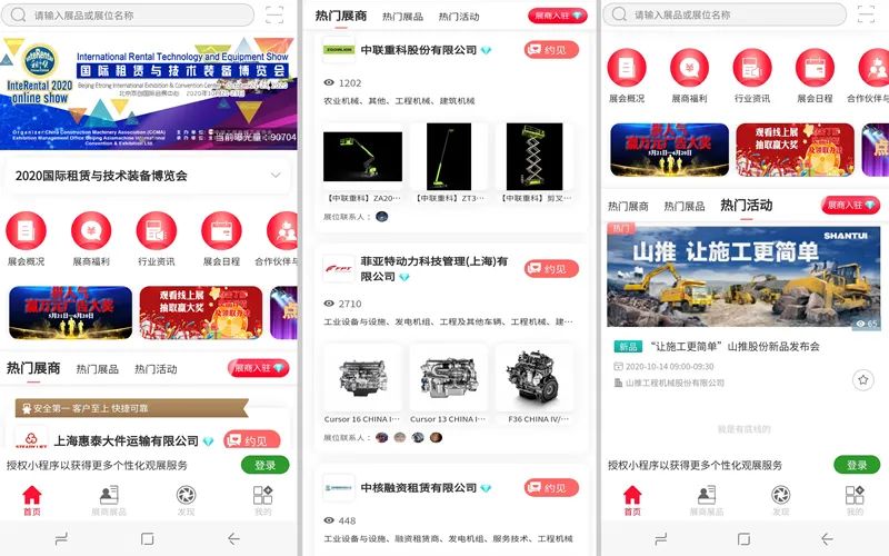 在经过先后入驻线上展的多家展商测试体验,一致认为线上展览的推出,拓展了原有线下交流沟通方式,极大的提升了展商观众的交流沟通效率,展商观众可以随时通过线上展览查找展品信息、优质展商、同期活动、交通安排等展会各类信息,同时在线上可以进行直播、约见、会谈等远程互动交流方式,提前获取精准信息和参与行业技术交流和供需对接,为线下展览开展做好了全面准备,将共同助力租赁行业复工复产复兴。