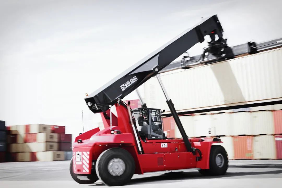 用于空载和半载集装箱装卸的卡尔玛Gloria正面吊,可以安全、精确地装卸所有类型的集装箱和12吨以下的吊装货物。Gloria正面吊能以横向、倾斜45度或纵向90度的角度运输集装箱,使集装箱通过低矮的车间门、港口厂房和其他狭窄的出口,实现端到端运输。