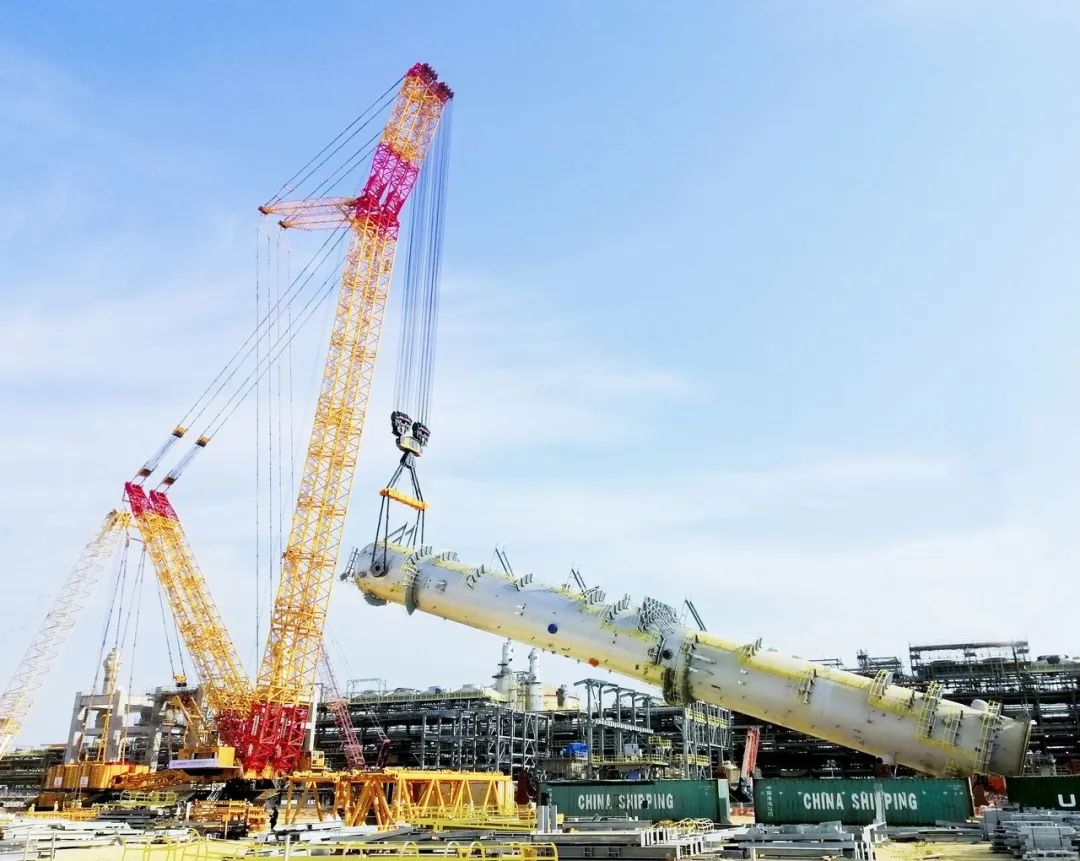 沿着“一带一路”的路径,去年10月,XGC88000走出国门,在沙特完成海外首吊,今年3月,再次转战海外第二站阿曼,成功吊装古雷炼化一体化项目中总重约2000吨的全球最大洗涤塔。中国技术、中国制造与中国吊装方案完美结合,让中国装备制造技术的实力得到了全面而有力的彰显。