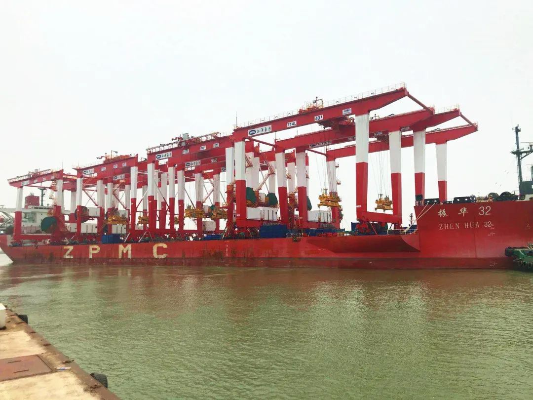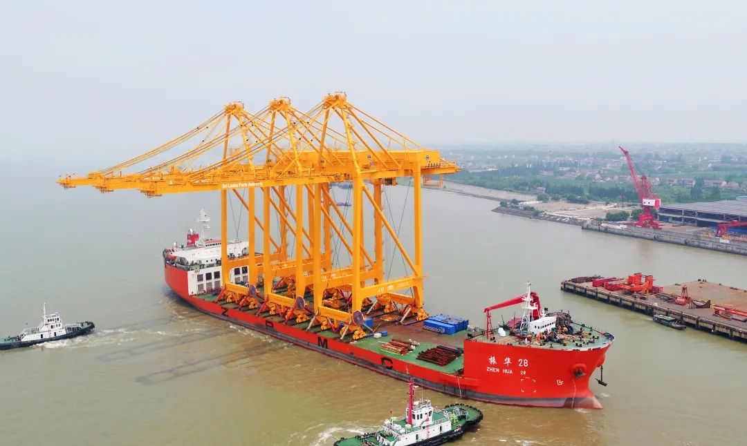 6月1日上午10点30分,振华重工为斯里兰卡港务局JCT码头提供的3台岸桥随“振华28”轮缓缓驶离长兴基地码头。