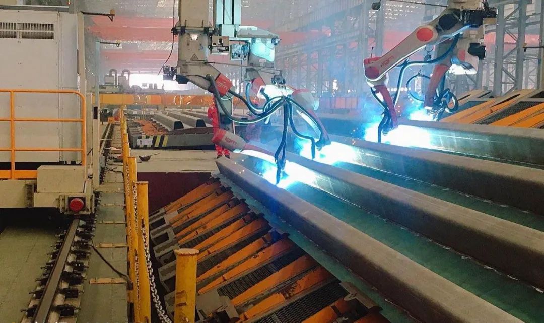 振华重工通过引进先进的自动化生产技术,对生产设备进行升级改造,打造了台车装配线、平衡梁焊接生产线、箱梁智能生产线等一批自动化生产线,同时,建立了吊耳重磅板、横隔板等机器人焊接工作站,充分发挥了自动化高效、环保、无返修、低能耗等优点,助力公司推进绿色高质量发展。