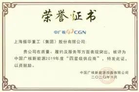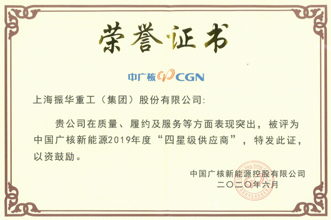 6月11日, 中国广核集团(以下简称中广核)在北京召开境内新能源业务领域2020年供应商大会。会上,振华重工被授予中广核新能源2019年度“四星级供应商”及中广核新能源2020年度“战略合作供应商”。