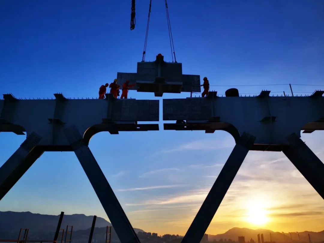目前,项目引桥和主桥已全部架设完成,随着主桥顺利合龙,后续施工重心将转入北接线钢箱梁,项目部将再接再厉,确保项目圆满完成。