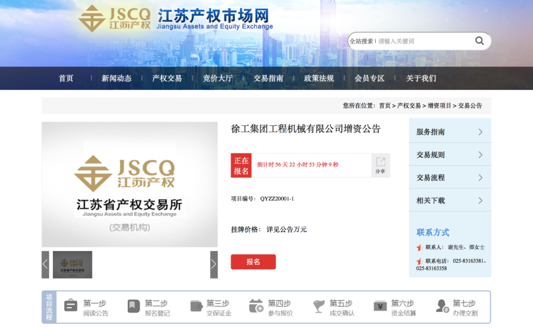 江苏产权市场网(http://www.jscq.com.cn/)上披露的《徐工集团工程机械有限公司增资公告》
