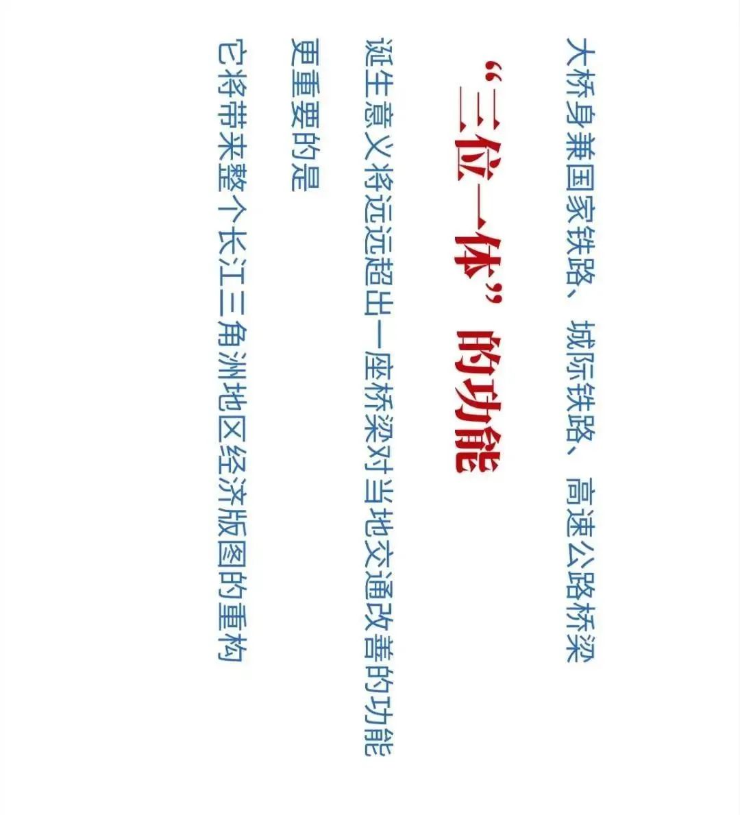 大桥上层为双向六车道高速公路,设计速度100公里/小时;南连锡张高速公路,北接G40沪陕高速、G15沈海高速,将使南通与无锡间的距离缩短至1.5小时,为沿海城市与苏南无锡、苏州间往来的车主提供新的跨江选择。