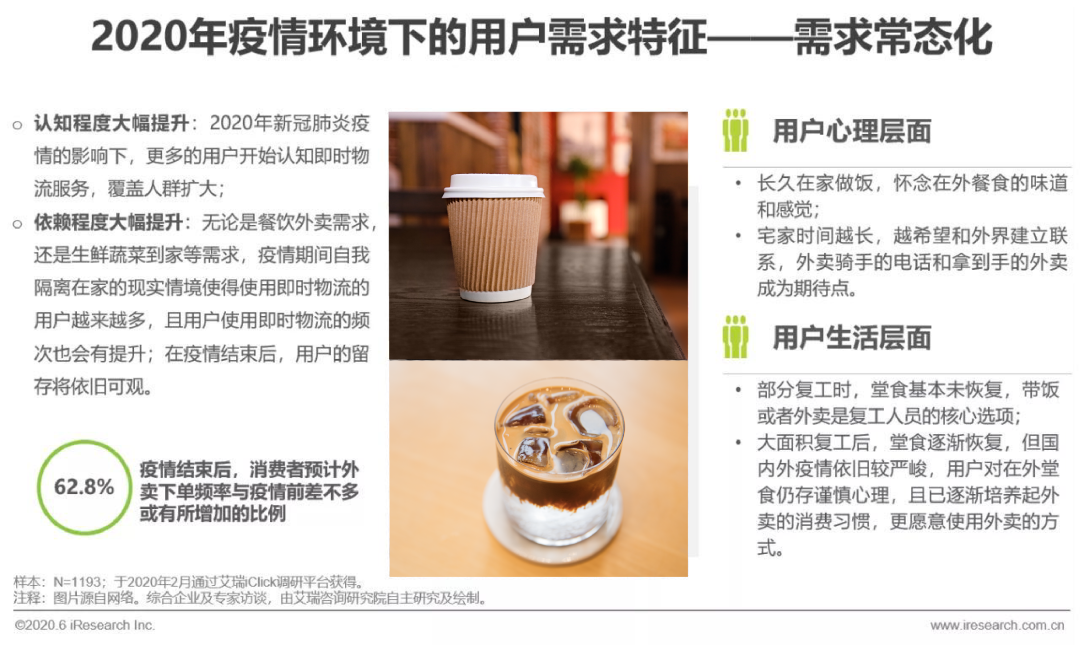 • 疫情后整体消费观基础:理性消费观念及个性消费倾向并存;• 餐饮:商户对外卖渠道依赖度提升,第三方生态体系需求度增加;
